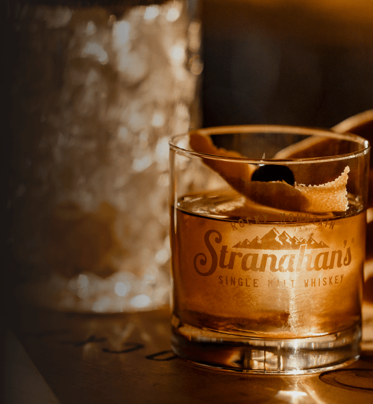 The Peak Stranhattan is our take on a modern classic — a smooth & tart cocktail with the hue of a Rocky Mountain sunset.